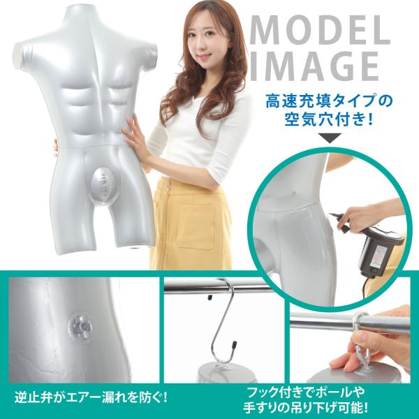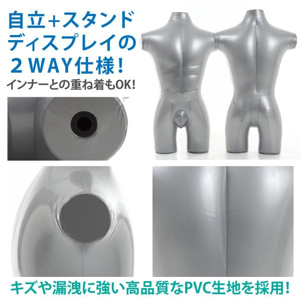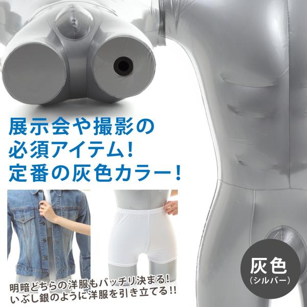 エアーマネキン マネキン トルソー 上半身 ボディ 男性 メンズ エアー 空気 式 服 アパレル 自立 吊り スタンド ディスプレイ 等身大 フリマ 撮影 灰色 取説付