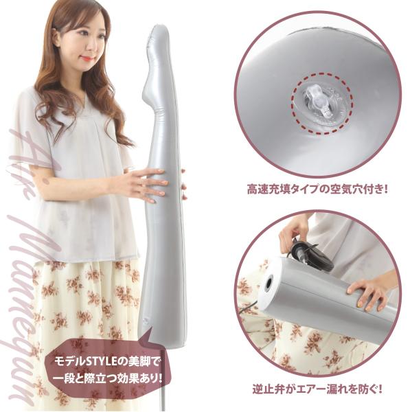 エアーマネキン マネキン トルソー 下半身 足 脚 女性 レディース ビニール エアー 空気 式 靴下 ストッキング 自立 スタンド ディスプレイ 撮影 灰色 取説付