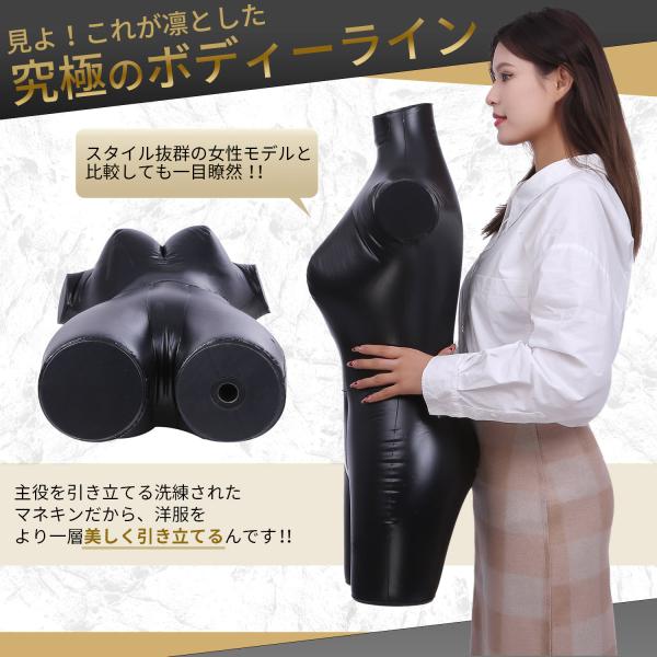 エアーマネキン マネキン トルソー 上半身 ボディ 女性 レディース エアー 空気 式 服 アパレル 自立 吊り スタンド ディスプレイ 撮影 黒 ブラック 取説付
