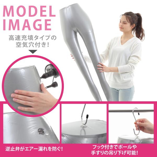 エアーマネキン マネキン トルソー 下半身 ボディ 脚 足 女性 レディース エアー 空気 式 靴下 ヒール 靴 自立 吊り スタンド ディスプレイ 撮影 灰色 取説付