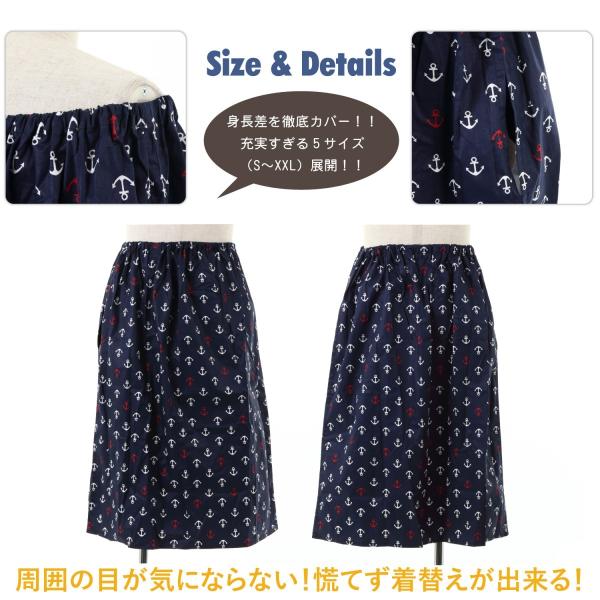素材:ポリエステル100% サイズ:標準体型サイズ、肥満体型サイズの2種類(丈は同じです。)特徴:健康志向の高まりにより、マラソンブームが近年継続的に起こっています。東京マラソンなどを筆頭に大規模なマラソンレースが全国各地で行われるようになりました。参加者が大人数になる会場では、ランニングウェアに着替える場所確保が困難なことも度々あります。そんなときにオススメです。機能:太陽光の透けない遮光生地採用!日光による、着替え中に見えてしまうかもしれないという心配もありません。セクシャリティーな問題にも気にせず、マラソンスタイルに着替えられるのは大きなメリットです。 また、腰元がゴム仕様になっているのと生地面積も広いので「すぐに着替えやすい」「腕をゆとりをもって広げられるので脱着がラクだった」「着替えの心配がなくなったので集中してマラソン大会に挑めた!」など、たくさんの「安心して利用できた」というお声をいただいております。使用例:ポンチョを被ったままアンダーウェアやウェアへの着替えを素肌を人前にさらすことなく可能になります。