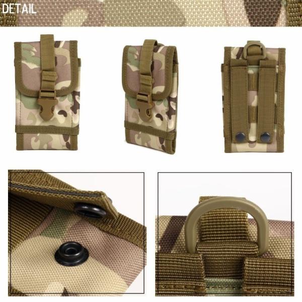 (サイズ)横幅約9cm×高さ約16cm/素材:1000Dナイロン製。1000DのDとはデニール(糸の太さを表す単位)の事で1Dで1gの糸を使用します。こちらは1000gの糸を使用した製品になり、その丈夫さはもちろんのこと軽量ですので持ち歩きにも便利な素材となっております。(機能)ワンタッチのバックルタイプです。片手でも素早く取り出すことが出来ます。「カチャリ」という音がベルトがしっかり閉まったという安心感も与えてくれます。ファスナー式では開閉に手間が掛かりボタン式ではいつの間にか開いてしまうかもしれないという不安も解消してくれます。(特徴)ポーチの裏側にはmolleベルトが付いておりますので、ズボンのベルトなどに直接取り付けることが出来ます。ベルトは2本付き!ふらつかず、しっかりと固定することが可能です。Dリングも付属!お手持ちのバッグなどにも取り付けられ、持ち運びには大変便利です。(カラー)ミリタリー好き専用カラー!プライベートで大活躍間違いなしの多彩な5色展開です。余計なポケットなどがなくシンプルなデザインです。ブラック以外のカラーでもスマートな印象を与えてくれるのがポイントです。