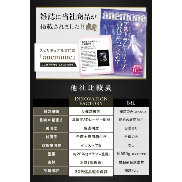 INNOVATION FACTORY 龍 置物 ミニ 水晶 風水 【5種類から選べるドラゴンx6cm水晶x専用台座付きx化粧箱付き】 金運 開運 クリスタル 水晶玉 玄関