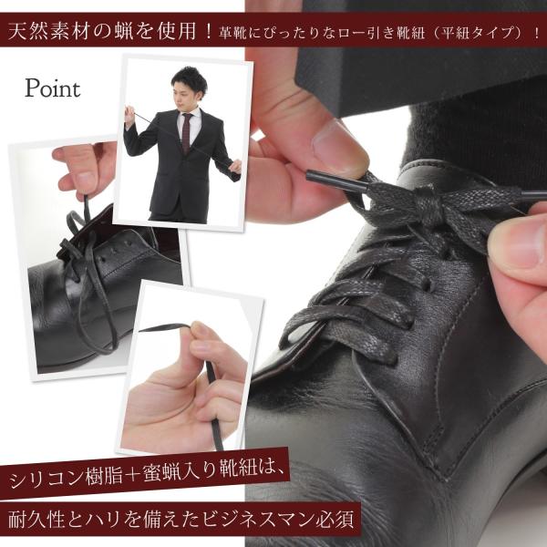 蝋引き 靴紐 平紐 シューレース ロウ ワックス ほどけない おしゃれ くつひも 蝶結び ワックスコード 紳士 スーツ 革靴 黒靴 メンズ靴 8本入り