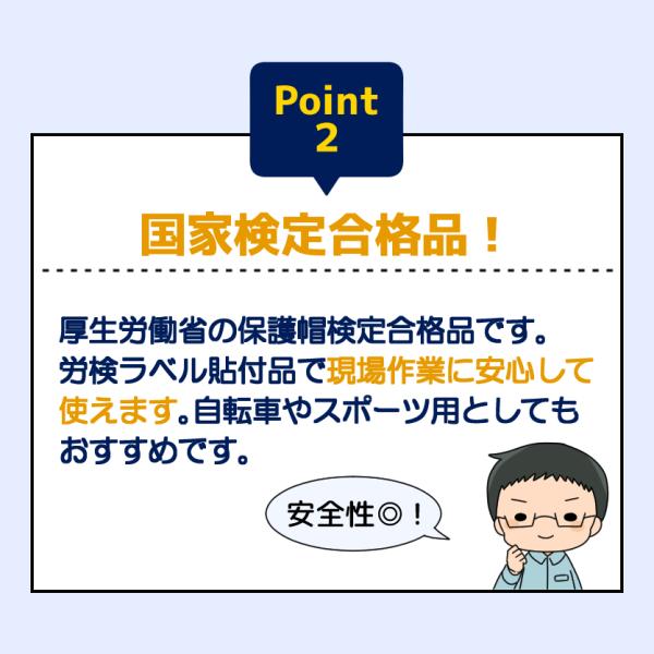 厚生労働省の保護帽(飛来落下物用)検定合格品です。