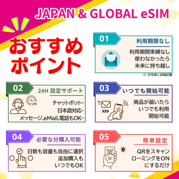 [日本 eSIM] データ専用 プリペイド 最短即日メール配信 容量 日数選択可 低速無制限付 日本語サポート 利用期限なし 実店舗販売