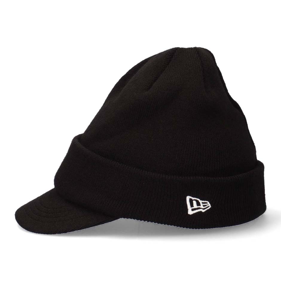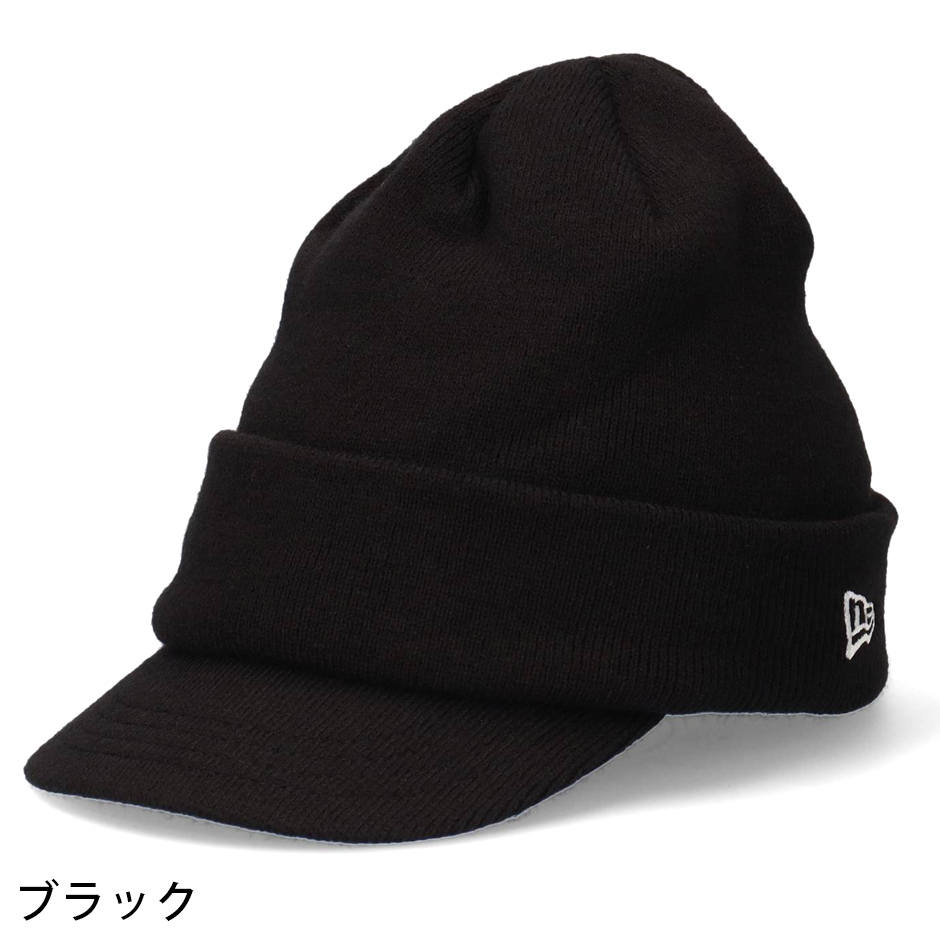 ニューエラ バイザーニット ニット帽 ニットキャップ ツバ NEW ERA つば付き ブランド シンプル ワンポイント ブラック ベーシック 無地 防寒