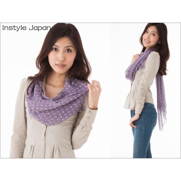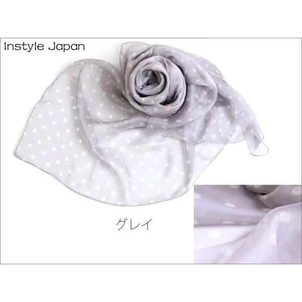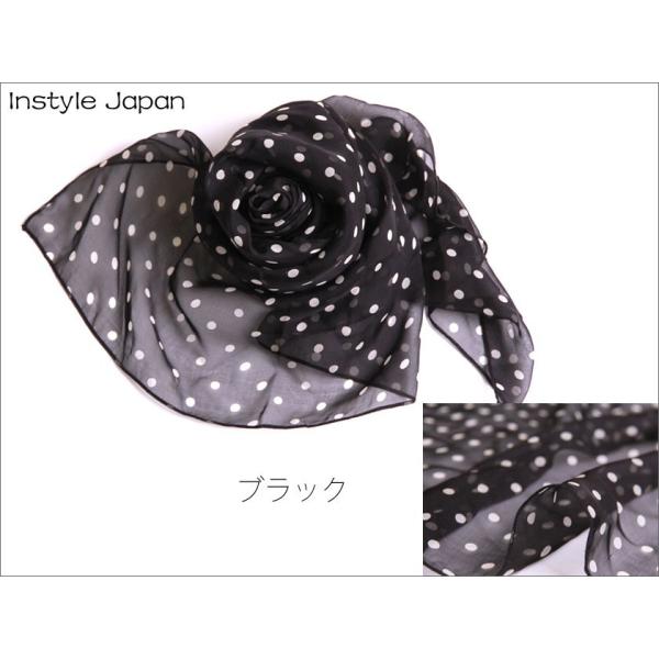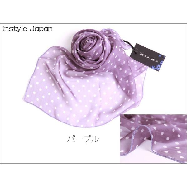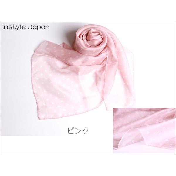 スカーフ レディース ストール シルク100% ドット 小 B 白 黒 ピンク 紫 水玉 大判 マフラー シフォン 紫外線 Bサイズ:195×65cm インスタイルジャパン