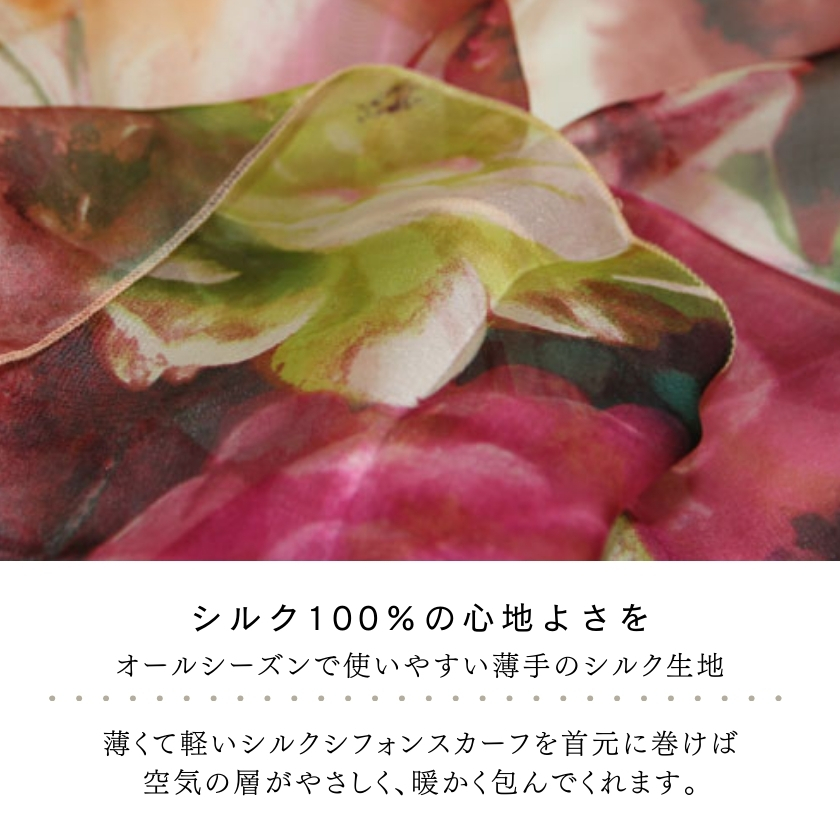 シルク 絹 silk 100% 天然素材 敏感肌 紫外線防止 日焼け防止 UV 防寒 首元 女性 レディース れでぃーす 男性 メンズ めんず 人気 おすすめ スカーフ ストール マフラー ネクタイ パレオ ネッカチーフ ポケットチーフ チーフ ハンカチ コンパクト 個性 母の日 誕生日 プレゼント 贈り物 入学式 卒業式 入園式 卒園式 パーティー フォーマル ドレス ボレロ お祝い バッグ チャーム 海外 セレブ デニム ジーンズ 送料無料 シフォン 薄手 花柄 個性 明るい 花柄 ピンク 薔薇 バラ 赤 緑 レッド グリーン 黄緑 カラフル フラワー 華やか