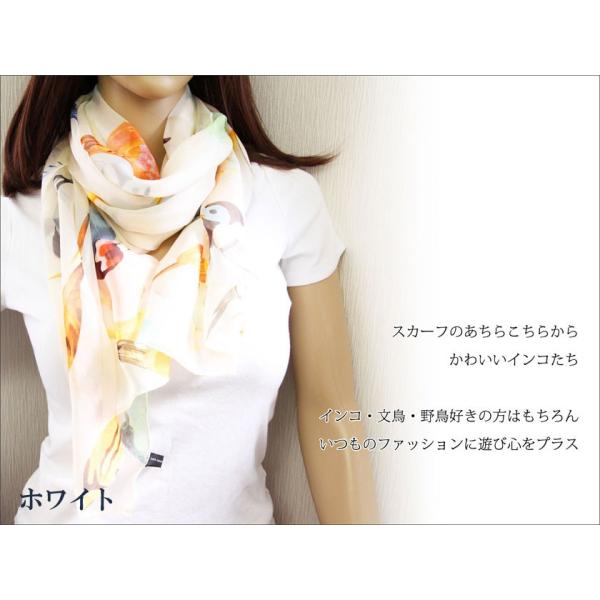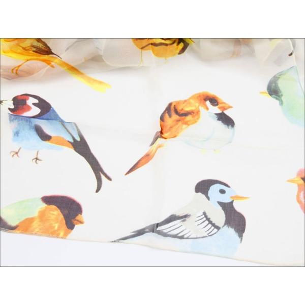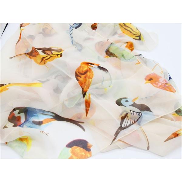 スカーフ レディース ストール シルク100% インコ B 文鳥 野鳥 小鳥 かわいい 大判 マフラー シフォン 天然素材 Bサイズ:195×65cm インスタイルジャパン