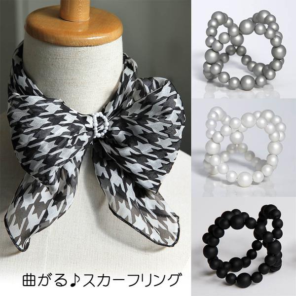 スカーフリング スカーフ留めパールビーズリング簡単 アレンジ 曲がる 軽い