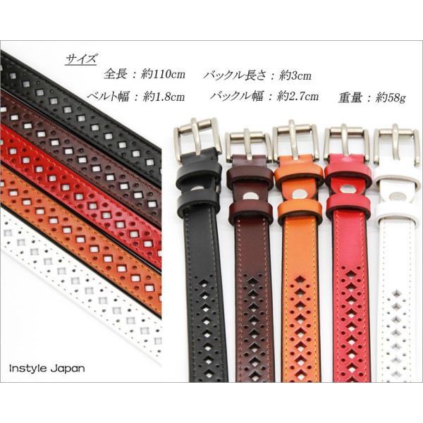 ベルト レディース BELT 本革スクエアベルト 細ベルト ブラック チョコレート キャメル レッド ホワイト スタイリッシュ インスタイルジャパン