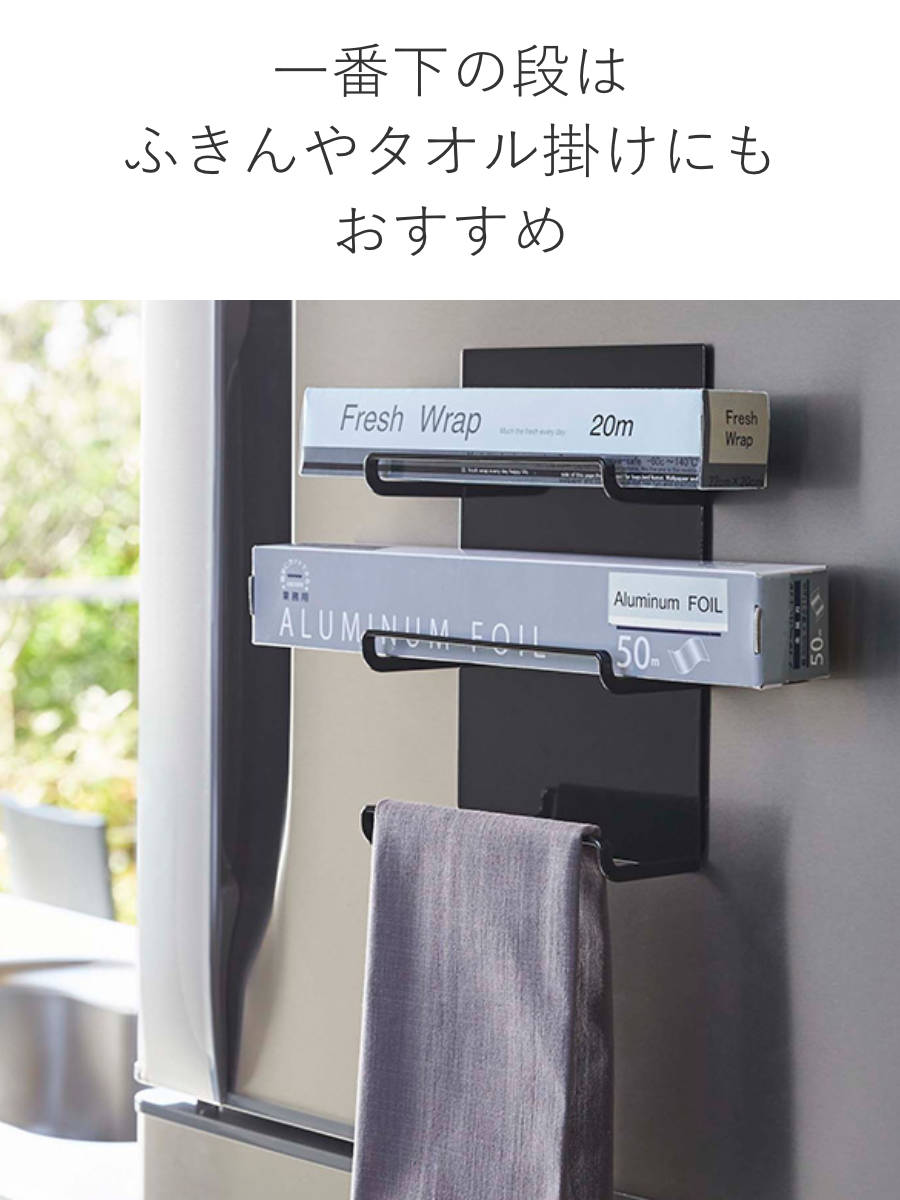 LH9336 LH4947 アルミホイル収納 タオルハンガー 冷蔵庫 壁面収納 タオル掛け タオルホルダー 4903208049405 キッチン 収納 磁石 白 黒 towerシリーズ ホワイト ブラック 山実 山崎 yamazaki スチール製 キッチンラック キッチンマグネット マグネット収納 冷蔵庫サイドラック マグネットキッチン おしゃれ ラップ ホイル アルミホイル クッキングペーパー クッキングシート オーブンシート キッチンシート フリーザーバッグ 壁掛け 省スペース 整理 有効活用 キッチン収納 台所収納 整理用品 収納用品 収納アイテム 小物収納 簡単設置 おすすめ オススメ 便利 シンプル スタイリッシュ お洒落 オシャレ モノトーン