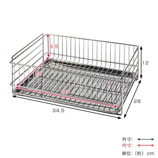 水切りラック どこでも置けるトレー付き ステンレス製 アットアクア ( 水切りかご 水切りカゴ 水切りバスケット )