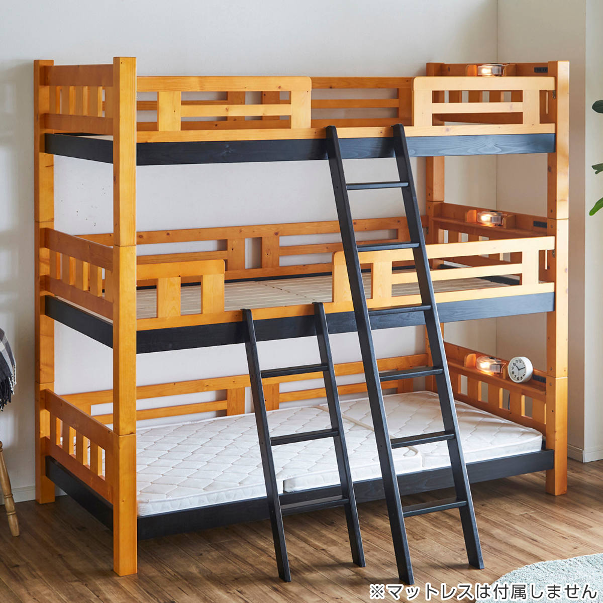 快適な眠りをサポートする、すのこ仕様の3段ベッド