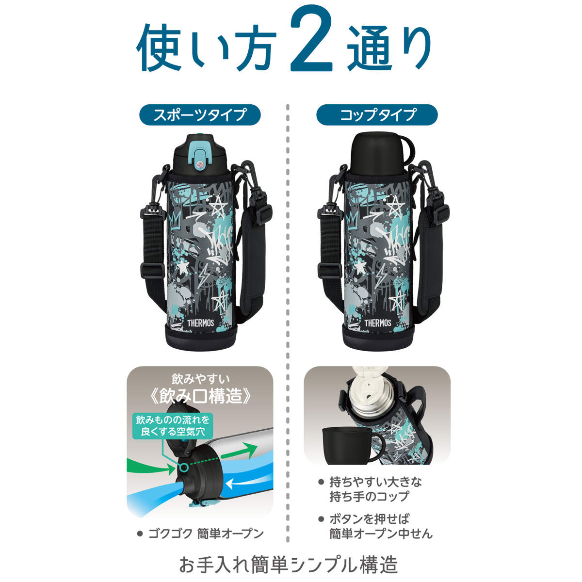 サーモス 水筒 1L 2way コップ付き 直飲み ステンレス FJJ-1001WF ( THERMOS 保温 保冷 子供 ワンタッチ ステンレスボトル 1000ml )
