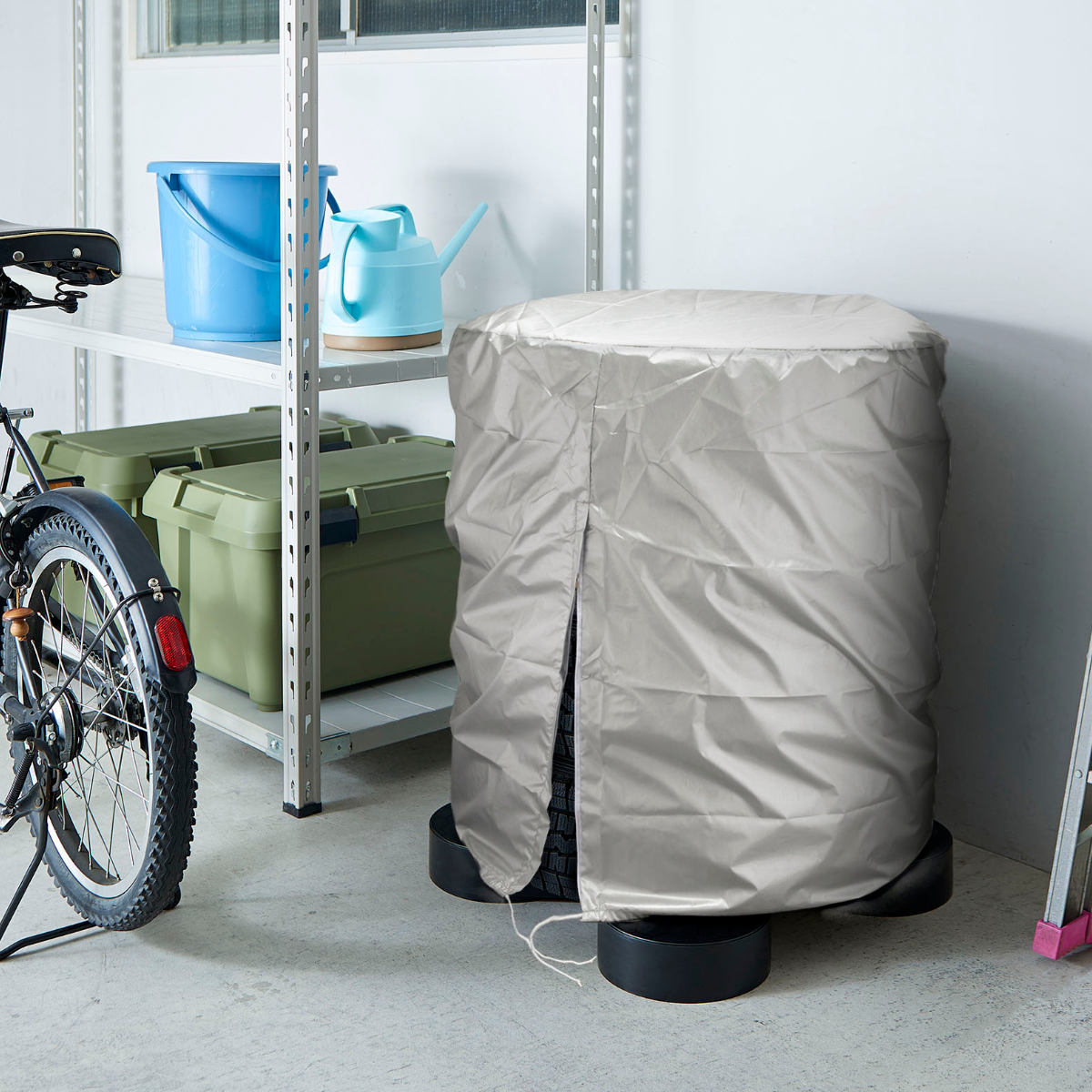 ●カバーはサイドファスナーで着脱しやすく、裾ひもでサイズ調整が可能です。