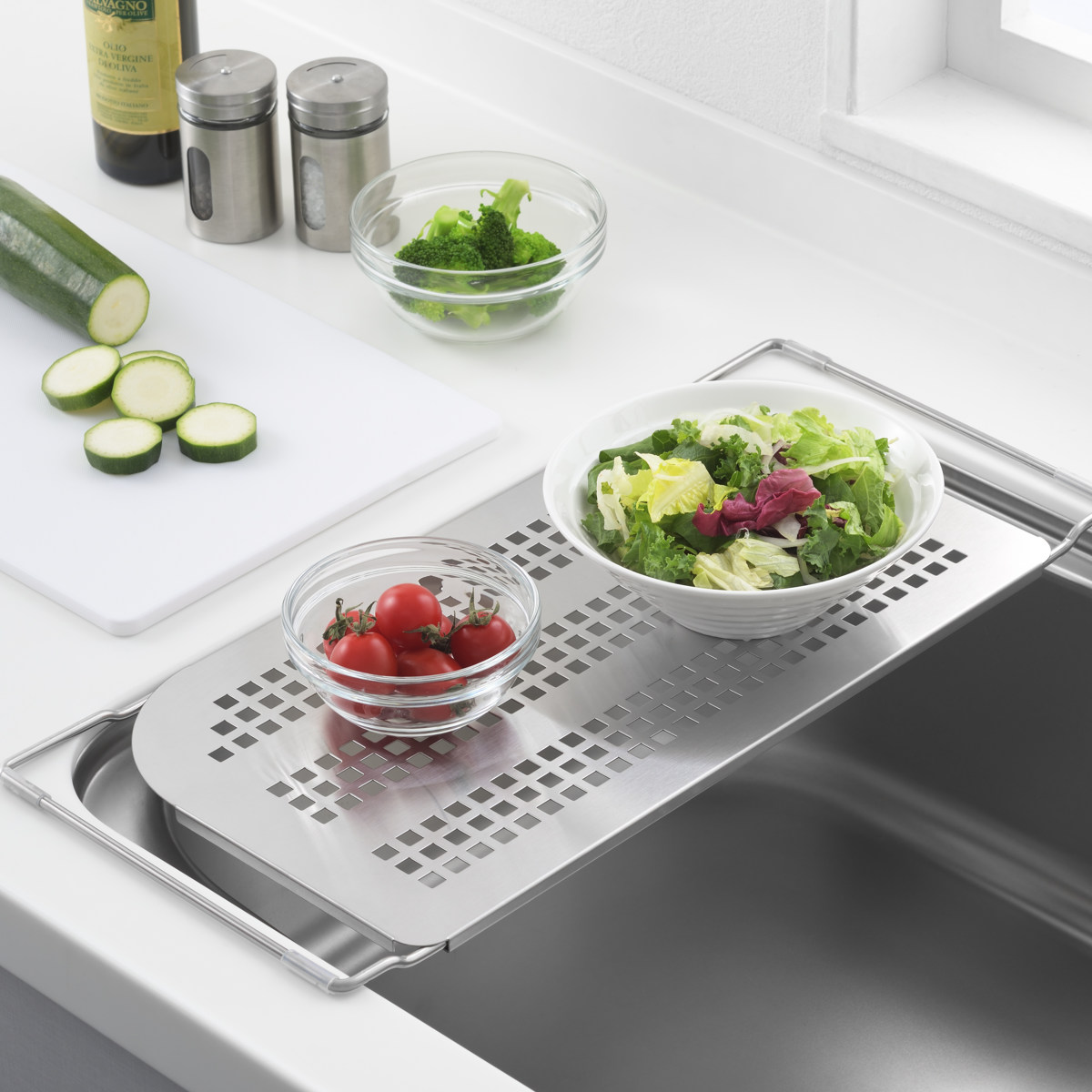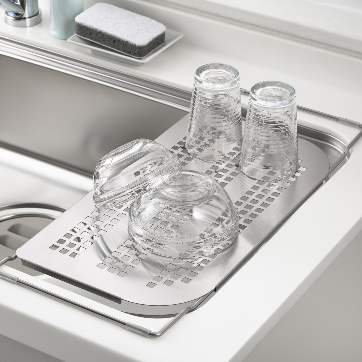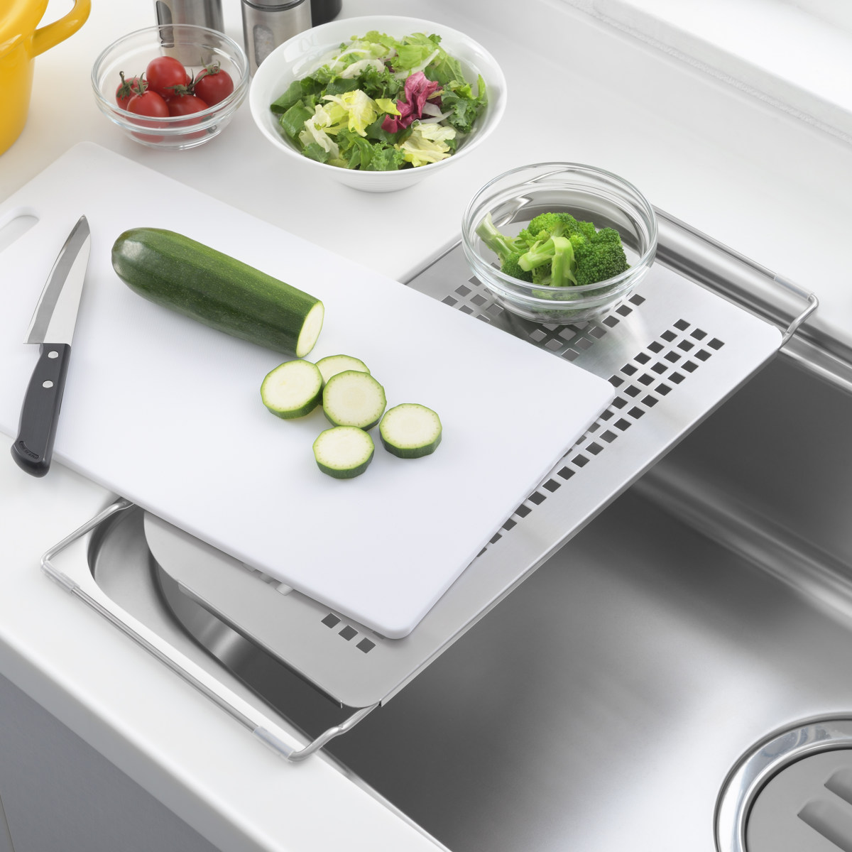 シンクに渡して調理スペースが広がる便利な水切りラック