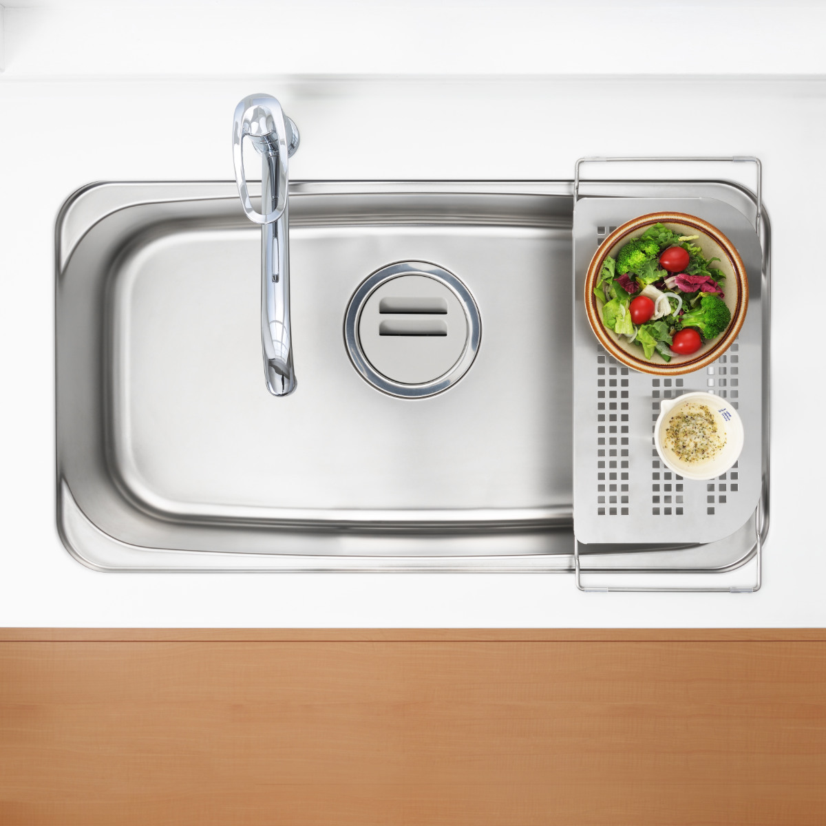 ●シンクに渡して調理スペースが広がる便利な水切りラックです。