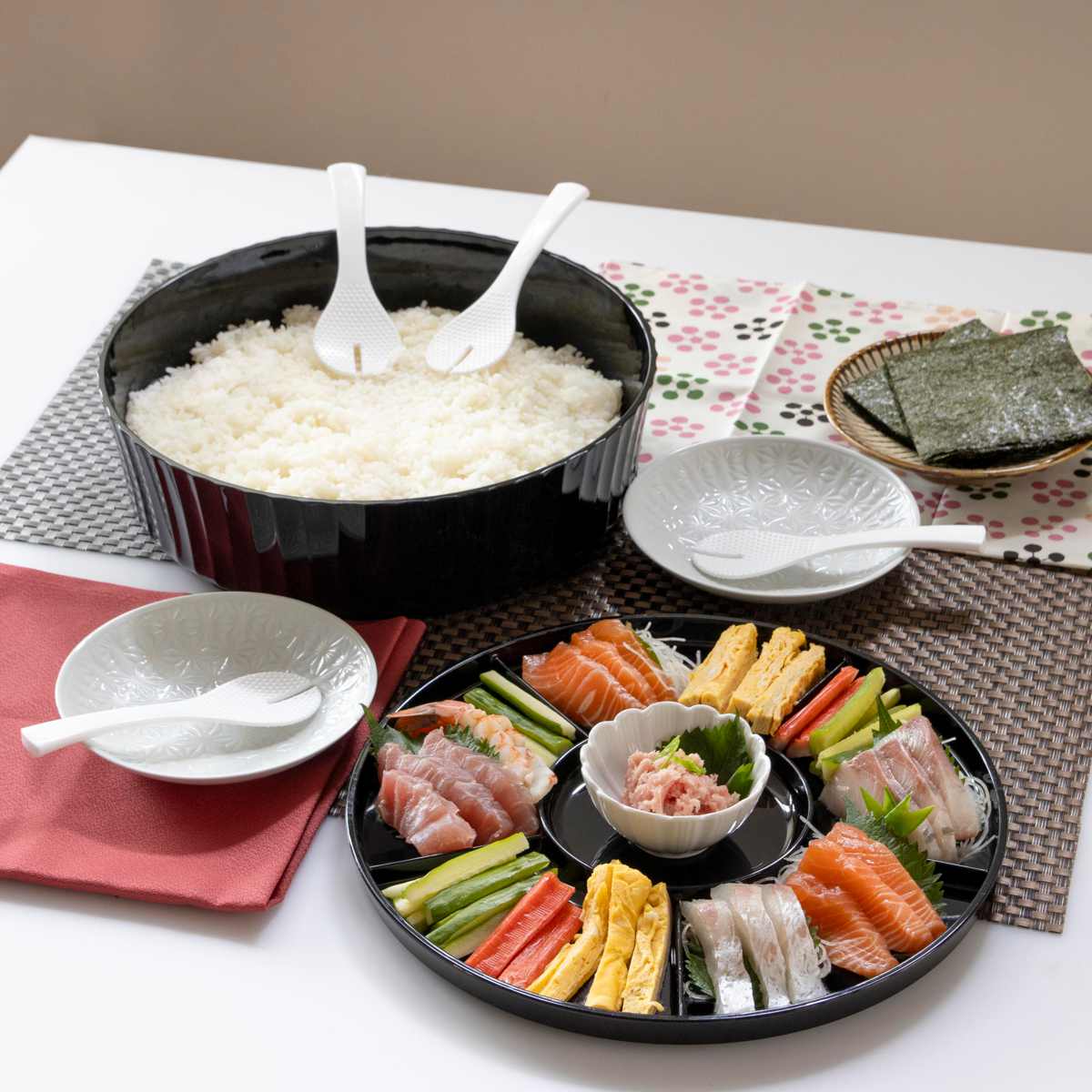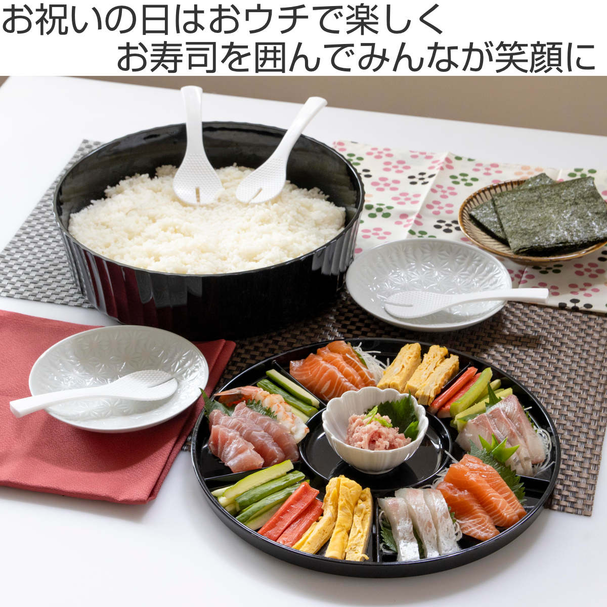 寿司桶 おウチで楽しい プラスチック 手巻き・ちらし寿司パーティーセット 6点セット ( 5合 すし 桶 おけ 飯台 すし桶 しゃもじ 日本製 手巻き寿司セット )