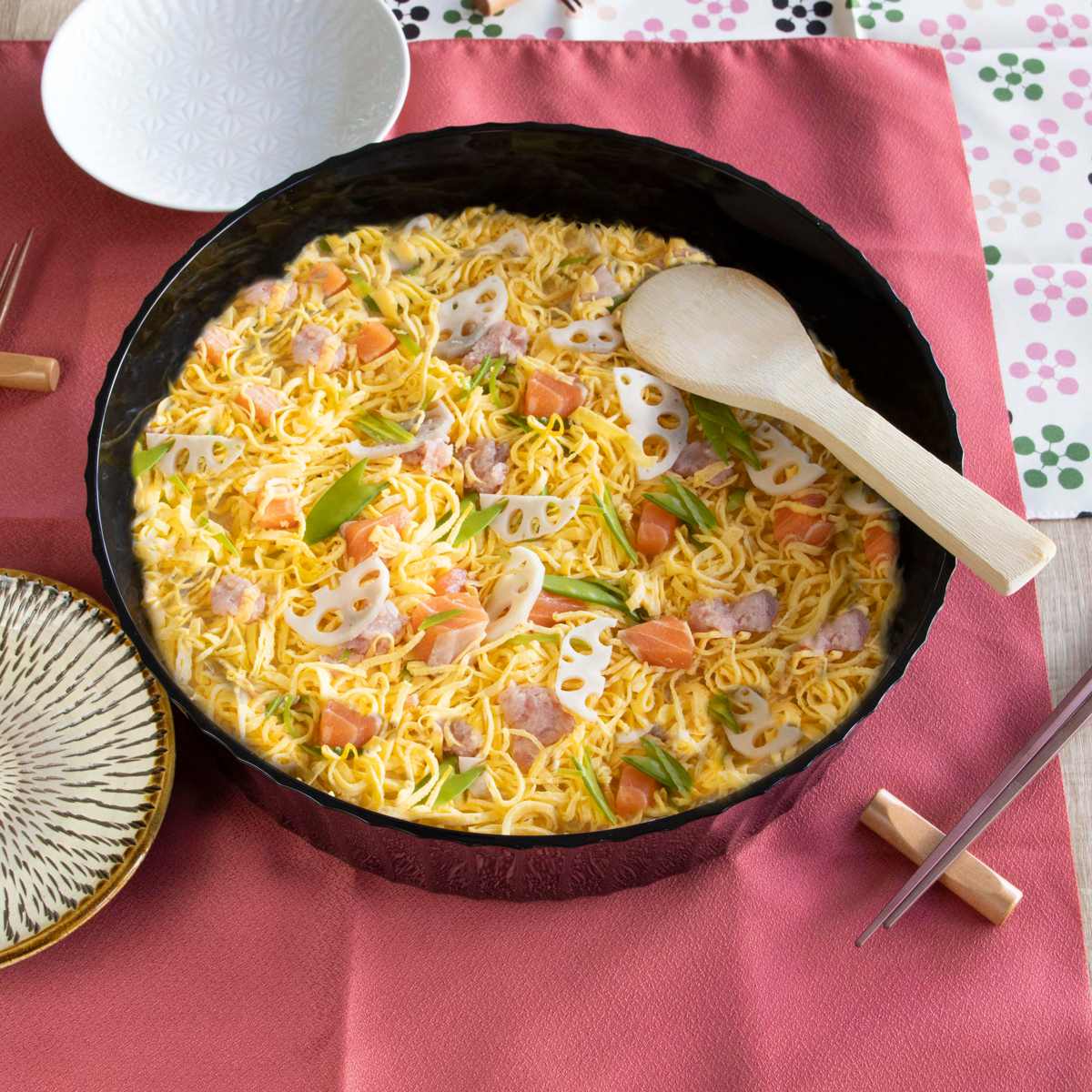 ●ご家庭で手巻き寿司やちらし寿司を楽しむのに便利な5点セット(寿司桶・仕切りプレート・しゃもじ4本)です。