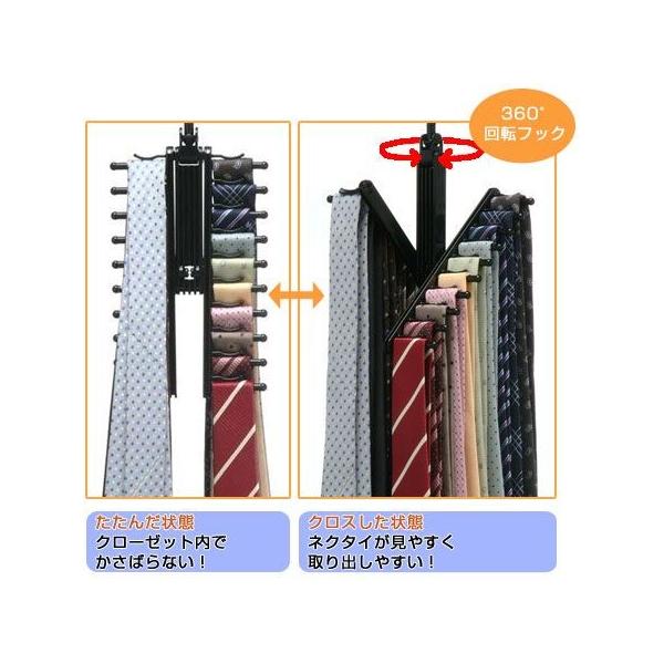 ●左右のネクタイ掛け部分を動かすと、クロスしてネクタイが取り出しやすくなります。●回転フックをクルッと回せば180度逆転するので、季節ごとに分別するのにも便利です。●ネクタイを20本掛けておくことができます。●畳んだ状態で収納するとクローゼット内でもかさばりません。●クロスした状態ではネクタイが見やすく取り出しやすいです。【商品詳細】サイズ:約 幅13.0×高さ29.0×厚さ1.5(cm) 内容量: 材質:ABS樹脂 備考:日本製 《》