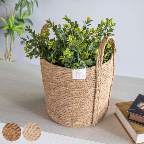 鉢カバーモネ フェイクPE バスケットラウンド L ( プランターカバー ポットカバー かご カゴ バスケット 収納カゴ 小物収納 手編み )