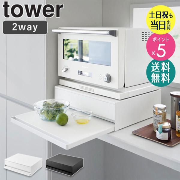 ツーウェイ キッチン家電下引き出し&スライドテーブル タワー tower 山崎実業 公式 スライドテーブル レンジ下 引き出し 収納 スライドトレー 2007 2008