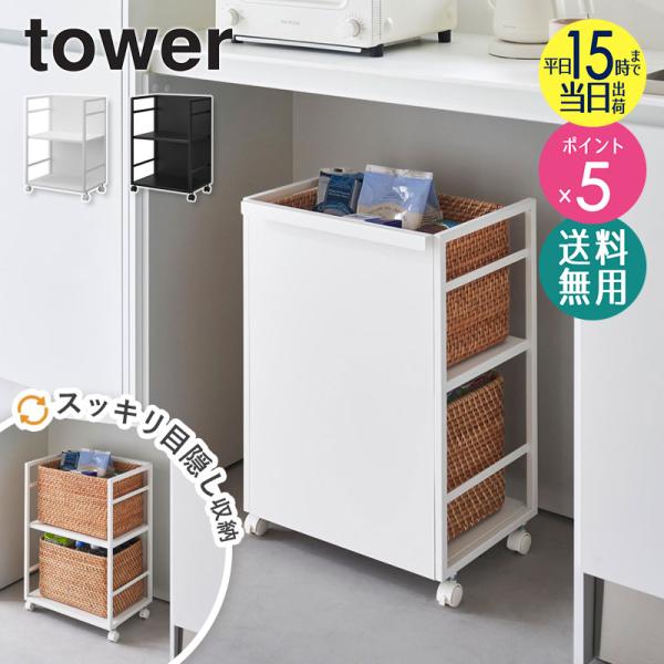 目隠しワゴン タワー tower 山崎実業 公式 キッチンワゴン キャスター付き 2段 収納 デスク下 キャスター スリム おしゃれ すき間収納 4810 4811 公式 爆買