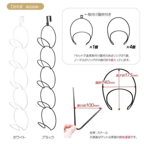 ジョイントハンガー リングス 山崎実業 公式 ハンガーフック ドアハンガー 収納 帽子ハンガー ストール掛け 連結フック 扉フック yamazaki 白 黒 6242 6243