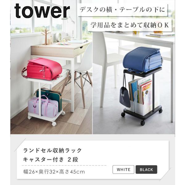 ランドセル収納ラック キャスター付き 2段 タワー tower 山崎実業 公式 ランドセルラック ランドセル収納 おしゃれ 白 ホワイト ブラック 1747 1748 爆買
