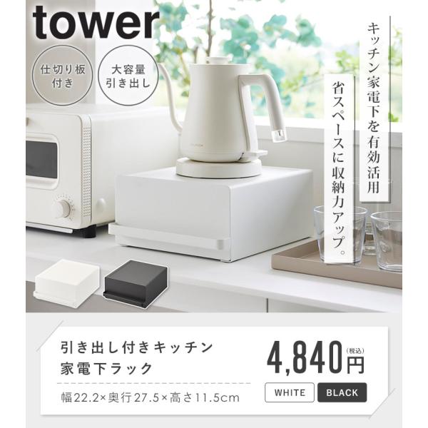 引き出し付きキッチン家電下ラック タワー tower 山崎実業 公式 家電下 引き出し 収納 カウンター ラック 卓上 キッチン 収納ラック おしゃれ 2018 2019 爆買