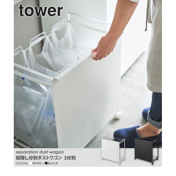 目隠し分別ダストワゴン 3分別 tower タワー 分別 キッチン おしゃれ ごみ箱 45L 大容量 山崎実業 公式 yamazaki 4332 4333 爆買