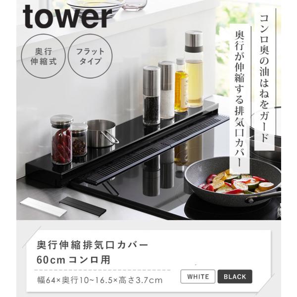 奥行伸縮排気口カバー 60cmコンロ用 タワー tower 山崎実業 公式 排気口カバー 薄型 フラット コ幅固定 汚れ防止 油汚れ スライド 4562 4563 公式 爆買