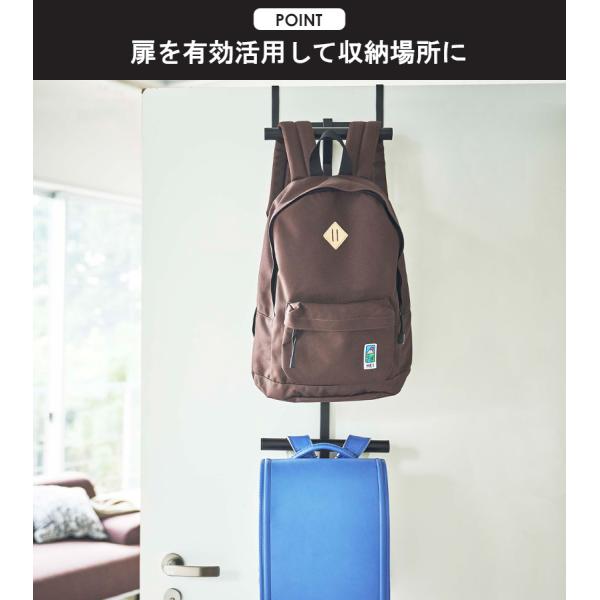 (検索キーワード) リビングドアやクローゼット扉に掛けるだけの便利な上下2段のハンガー。ランドセルの定位置として、バッグや小物の収納、お出かけ前の身支度など用途に合わせて使い方自在。 扉 引っ掛け 収納 スリムハンガー ランドセル リュック 収納 フック キッズ おしゃれ 省スペース シンプル 白 黒 ホワイト ブラック