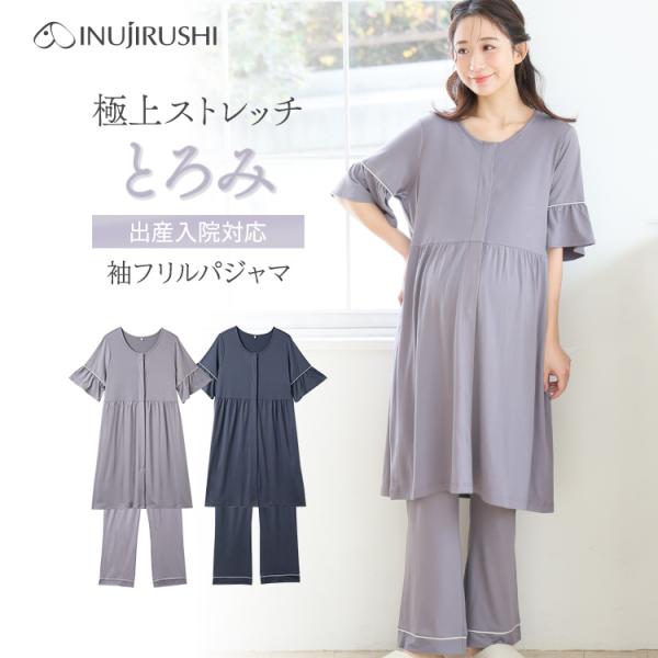 犬印本舗 マタニティパジャマ フリル袖 二の腕カバー マタニティ パジャマ ルームウェア 半袖 前開き 入院 入院準備 出産準備 春 夏 妊婦 ママ 産後 授乳