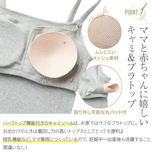 ・100% オーガニックコットンを使用した授乳キャミソール。