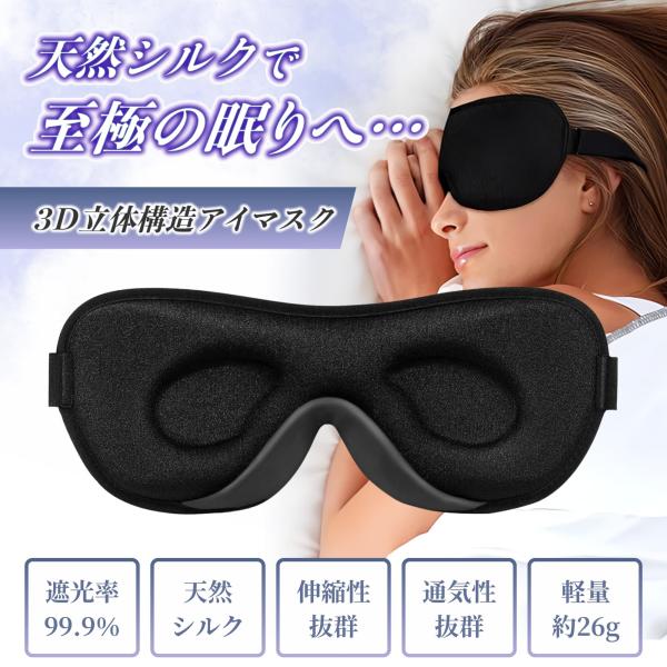 アイマスク 疲れ目 洗える 睡眠 グッズ 旅行 快適 安眠 アイピロー 遮光 快眠 フィット プレゼント ブラック シルク 通気性 3D 立体 軽量 調節 女性 シンプル