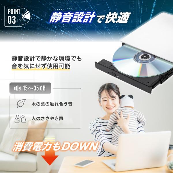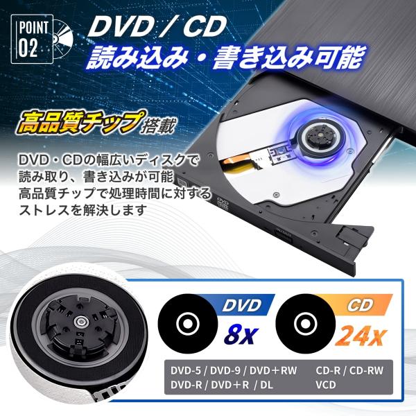 DVDドライブ usb3.0 パソコン windows CD ポータブル 接続 外付け ブラック 書き込み type-c 簡単 高速 mac プレーヤー ホワイト 静音 高品質