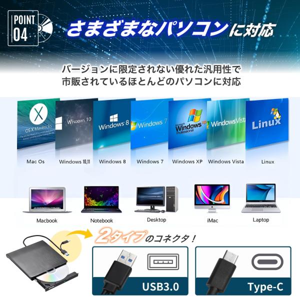 商品名:DVDドライブ usb3.0 パソコン windows CD ポータブル 接続 外付け ブラック 書き込み type-c 簡単 高速 mac プレーヤー ホワイト 静音 高品質