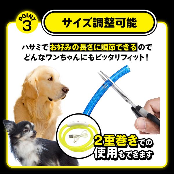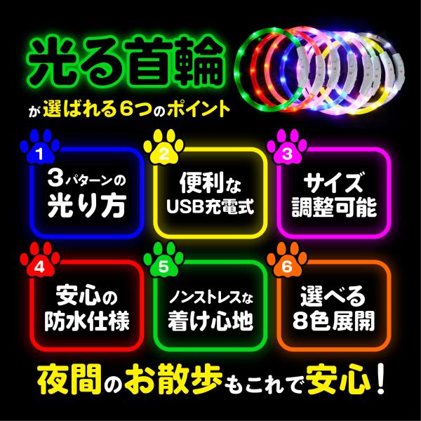 首輪 光る 犬 ライト LED カラー ペット 小型犬 中型犬 大型犬 散歩 おしゃれ 安全 安心 ケーブル サイズ調整 フィット USB充電 発光 夜道