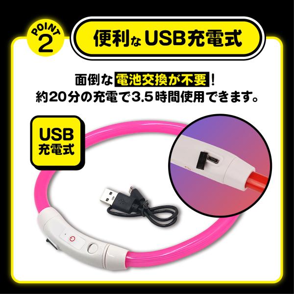 首輪 光る ケーブル 犬 ライト LED カラー ペット 小型犬 中型犬 大型犬 散歩 おしゃれ 安全 安心 ピンク サイズ調整 フィット USB充電 発光 夜道