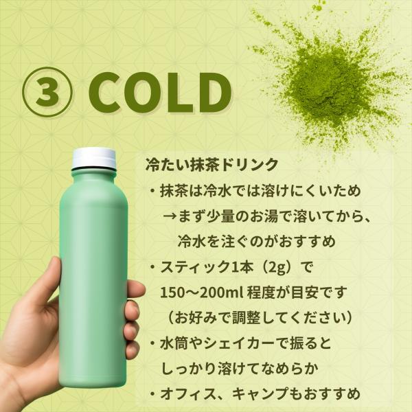 お試し購入や持ち歩きに便利な小分けパックで、どこでも手軽に抹茶をお楽しみいただけます。