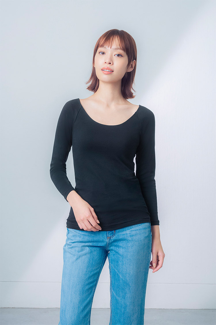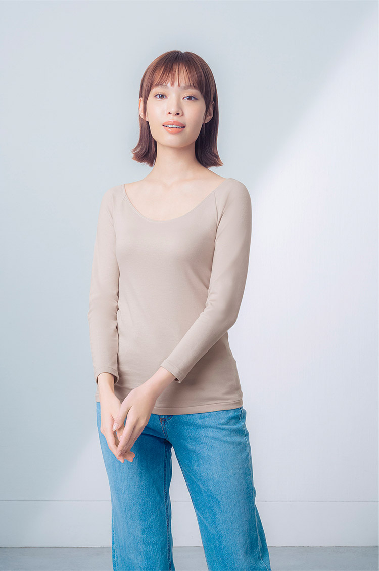 ワコール ウイング ムレにくく、あたたかで快適 綿の贅沢オーガニック インナー トップス ネック広め 8分袖 M/L/LL EL4931