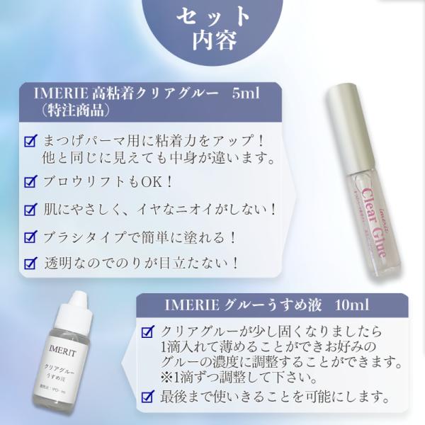 〔IMERIT〕5分でかかる! 日本製 エクステ つけまつ毛用 低刺激パウチパーマクリーム液(10回分) /高粘着クリアグルー セルフまつげパーマ