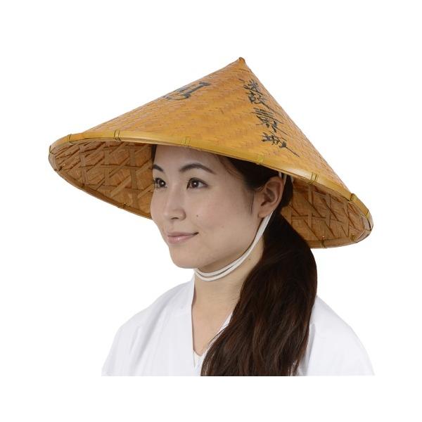 お遍路さんがかぶるための竹で編まれた笠です。表面には防水性・耐久性を高める加工がされています。強い日差しから守ってくれる日除けとして、また雨風をしのぐ雨具として大いに役立ちます。頭を固定する五徳と呼ばれる台座が付いています。