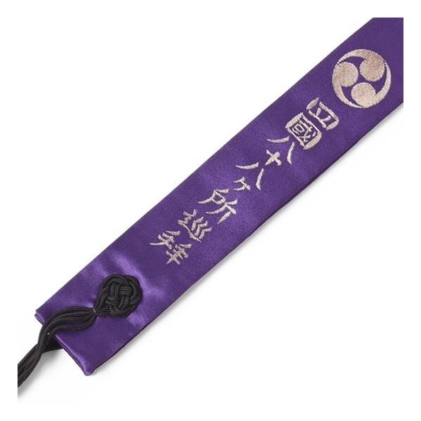 お遍路用の輪袈裟です。三つ巴の紋の他に四国八十八ヶ所巡拝、南無大師遍照金剛が金糸で織り込まれています。また、首元には、五三の桐紋が入っています。