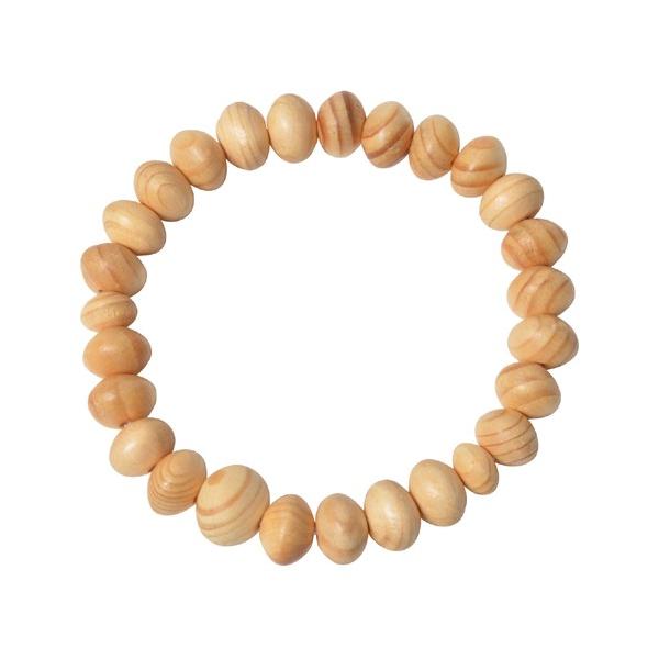 高野槙は、全国有数の深山にあるスギ科の常緑高木で、その中でも材質の緻密なものを腕輪念珠に仕立てております。