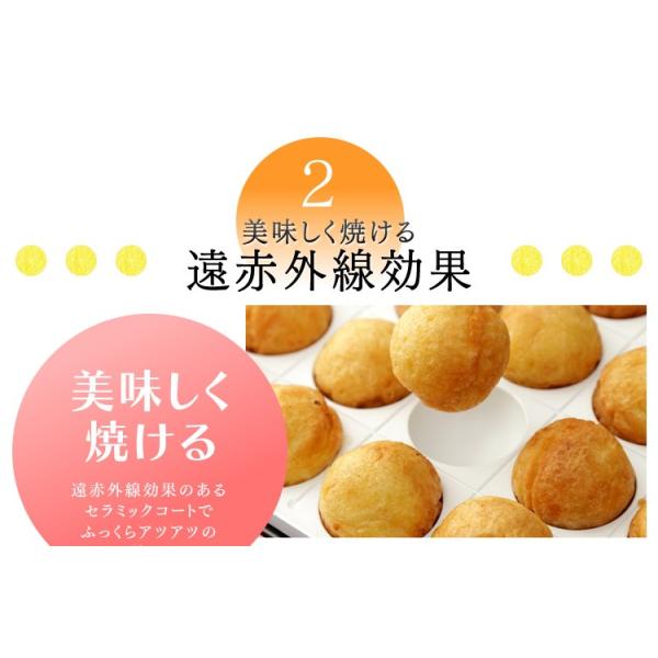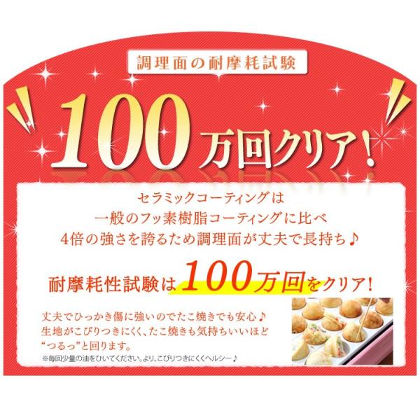 こびりつきにくいセラミック加工で、焼きムラも少なく、アツアツおいしいたこ焼きが作れる!