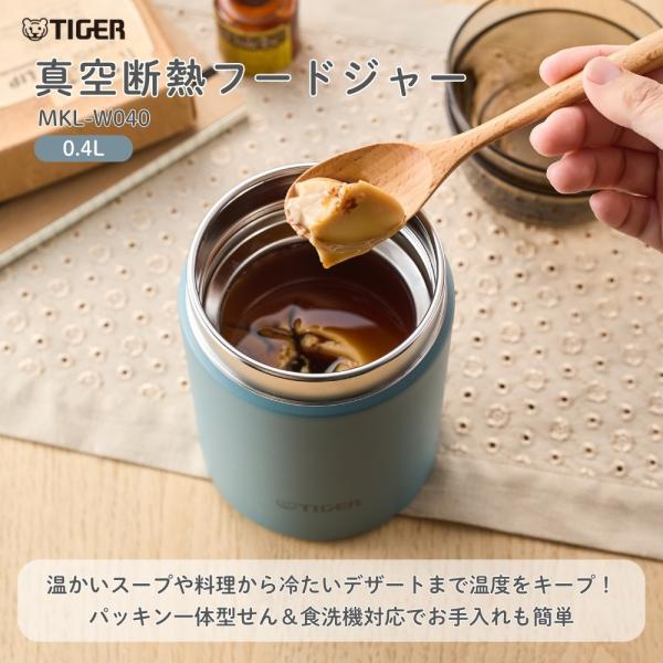 タイガー魔法瓶 真空断熱フードジャー 弁当箱 MKL-W040 スープジャー 400ml 保温 保冷 カレー デザート スープ ステンレス 広口 洗いやすい 食洗器対応